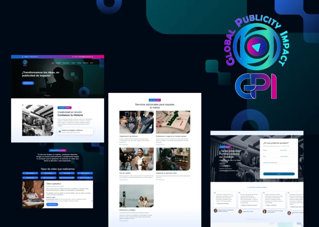 GPI Productions es una agencia ubicada en Los Ángeles, especializada en producción audiovisual y estrategias de contenido para marcas, negocios y proyectos personales. El enfoque principal del equipo está en transformar ideas en videos que comuniquen de forma clara, conecten con la audiencia y generen impacto. Para esto, ofrecen diferentes tipos de piezas audiovisuales como videos explicativos, testimoniales, promocionales, comerciales, tutoriales y contenido para redes sociales, adaptándose a distintos formatos y objetivos de comunicación.